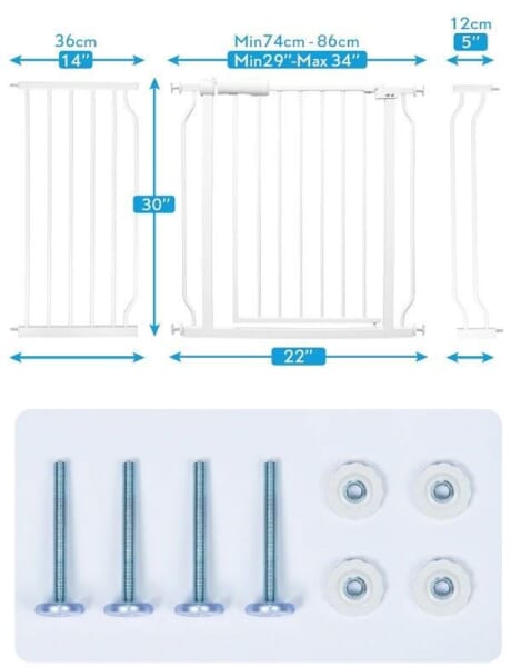 Cửa chặn Umoo cho em bé tự động đóng rộng 74 cm (29 inch) của chúng tôi được làm từ thép kiểu dáng đẹp, có đường kính lớn hơn và bền hơn.