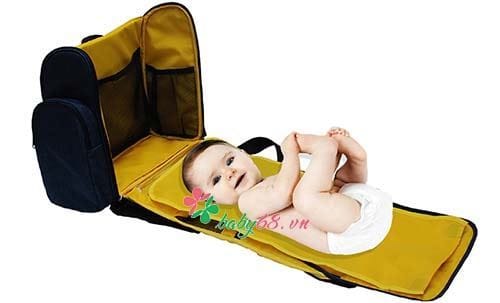 Từ túi đeo,bạn có thể dễ dàng biến hóa thành balo hoặc tấm trải nằm để thay tã hoặc đệm ngồi cho bé rất tiện lợi
