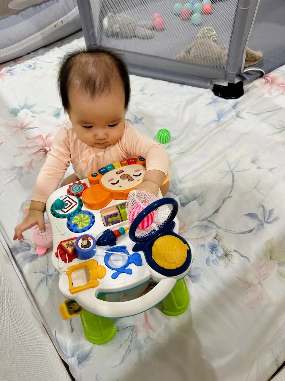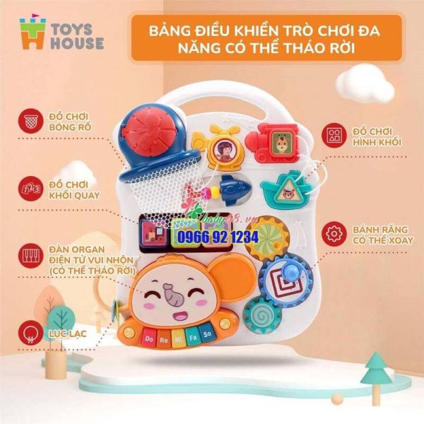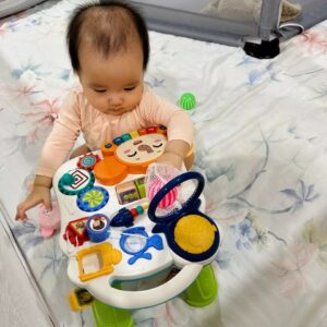 ✔ Đa dạng đồ chơi trên mặt bàn tạo hứng thú cho bé trong khi chơi cũng như giúp bé học hỏi, khám phá thế giới về màu sắc, hình khối, âm thanh và nhiều hơn nữa