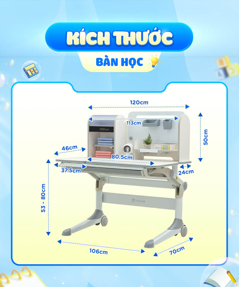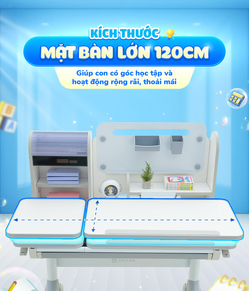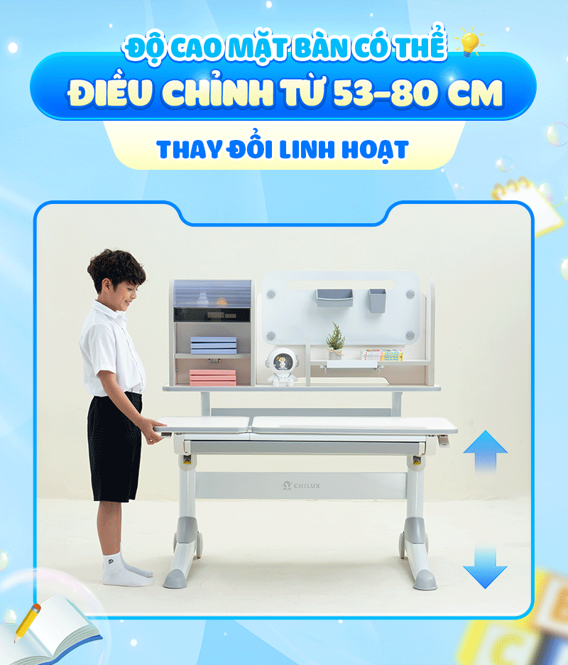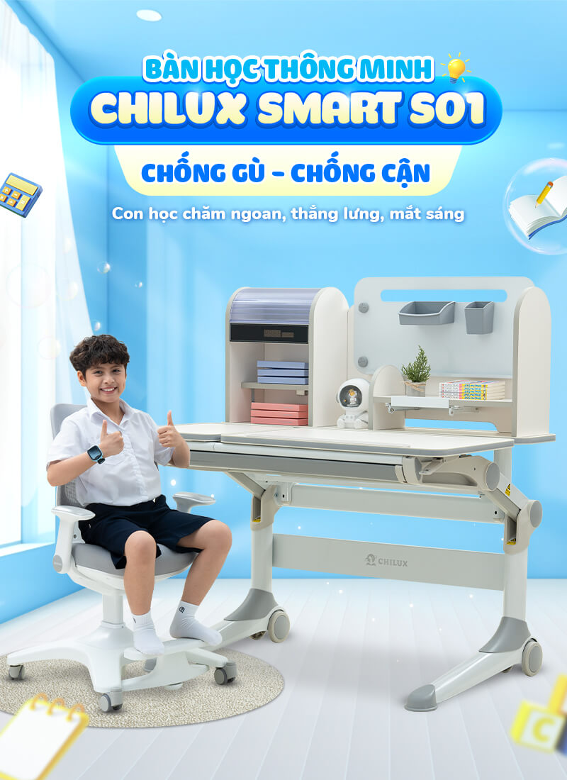 Bàn học cho bé cao cấp Chilux Smart S01 chống gù, chống cận, điều chỉnh độ cao linh loạt