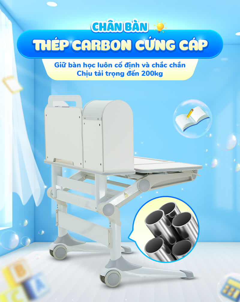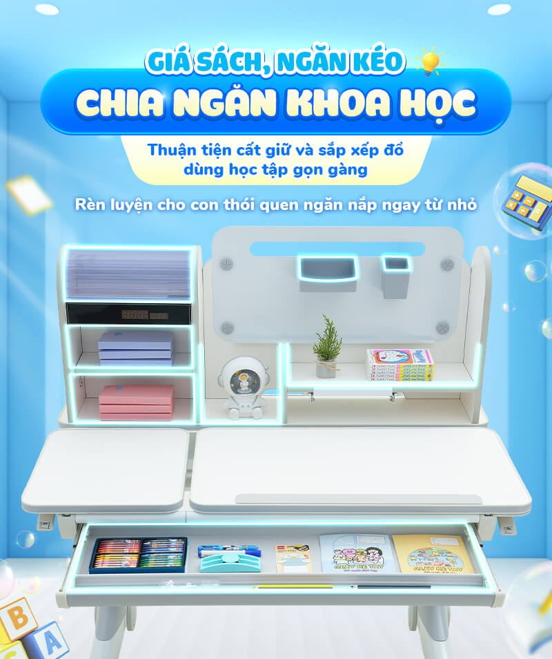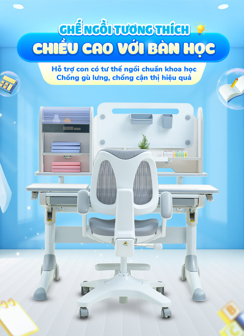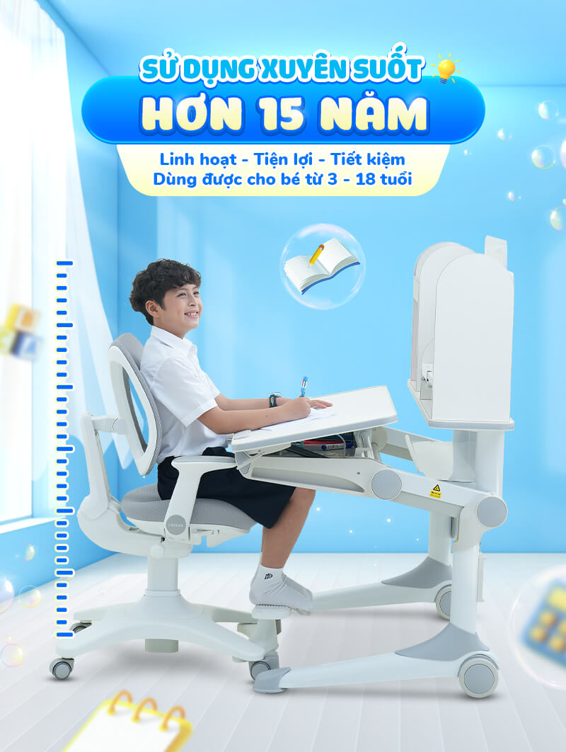 Bàn học cho bé cao cấp Chilux Smart S01 chống gù, chống cận, điều chỉnh độ cao linh loạt