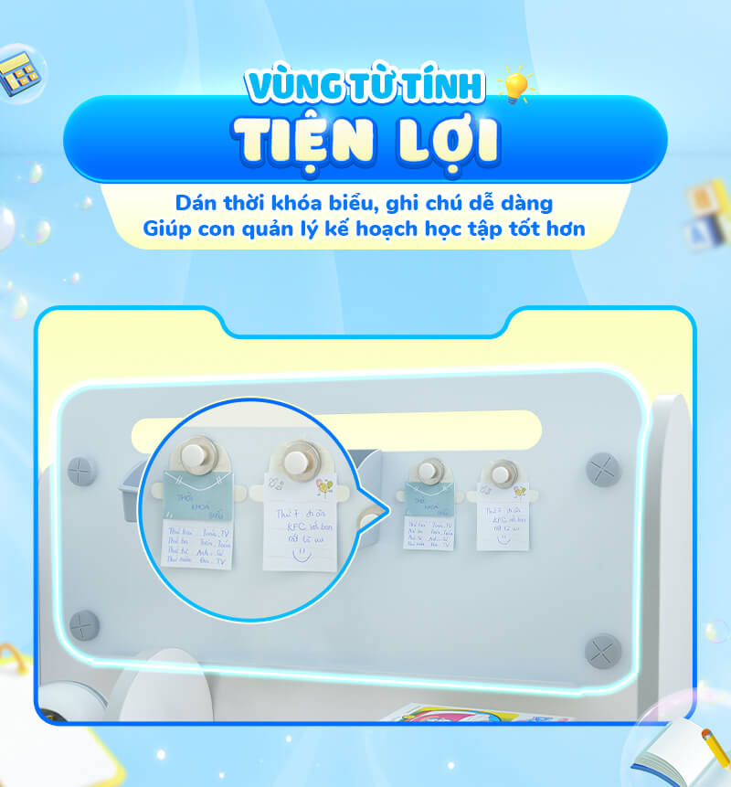 - Vùng từ tính để dán thời khóa biểu, ghi chú