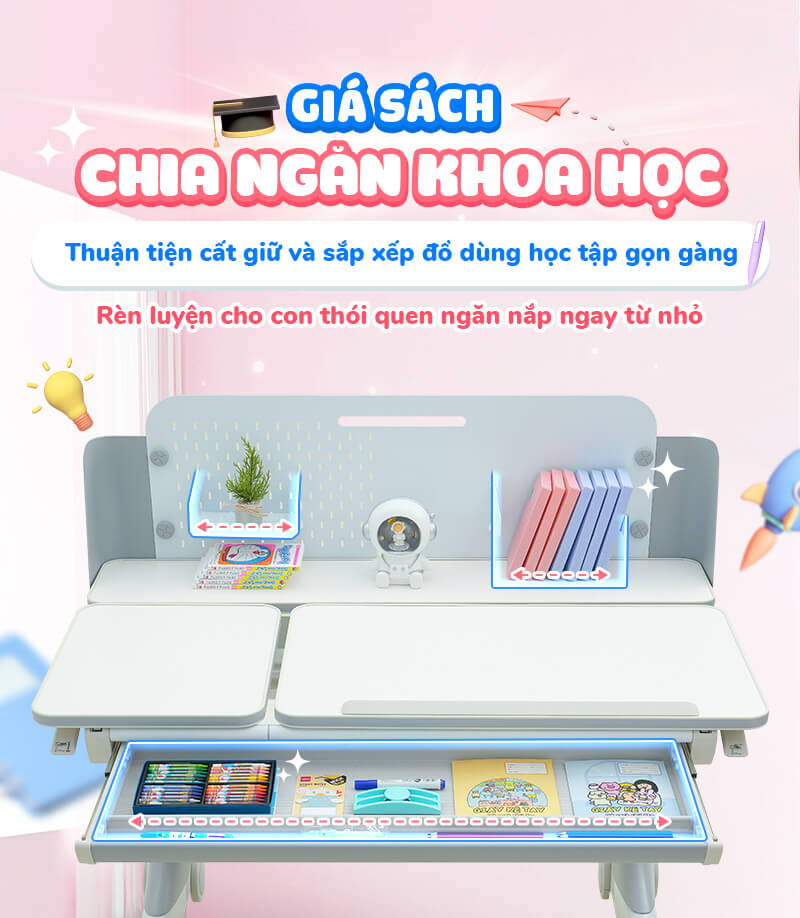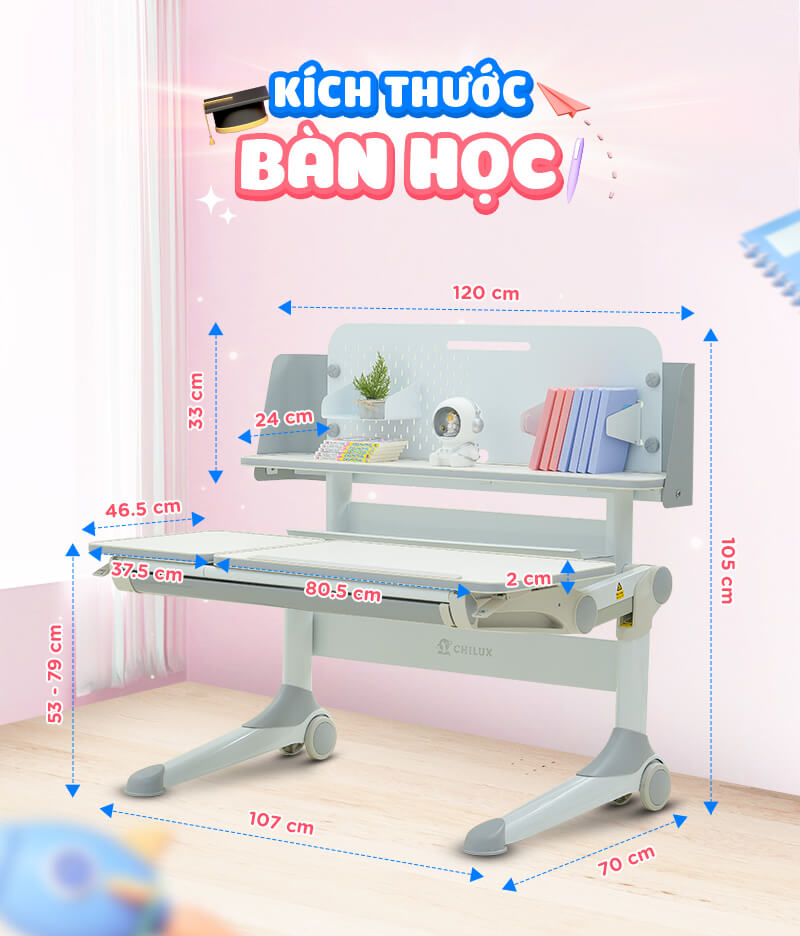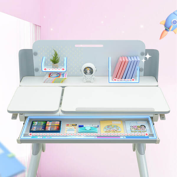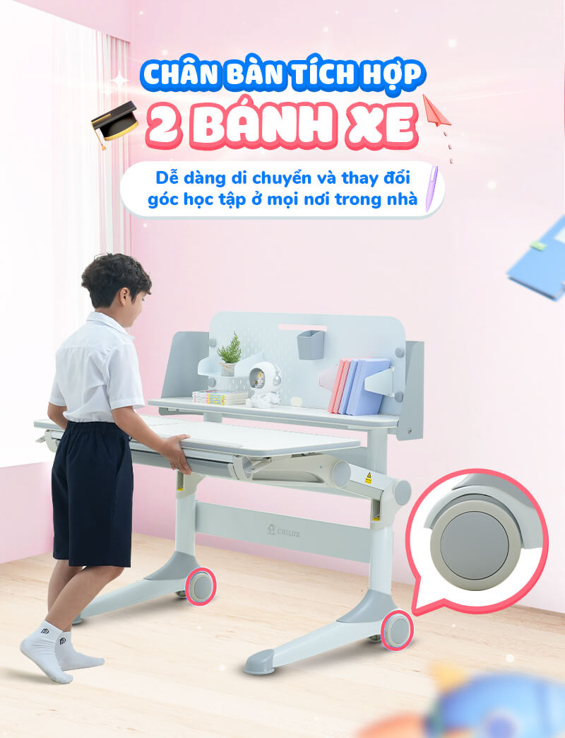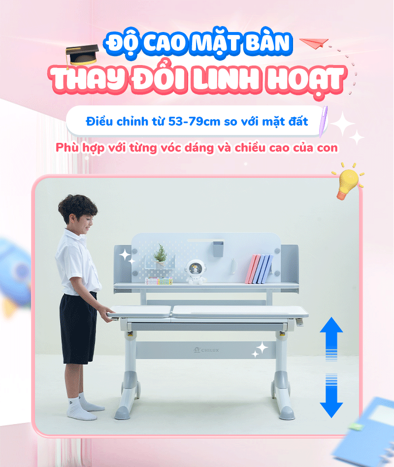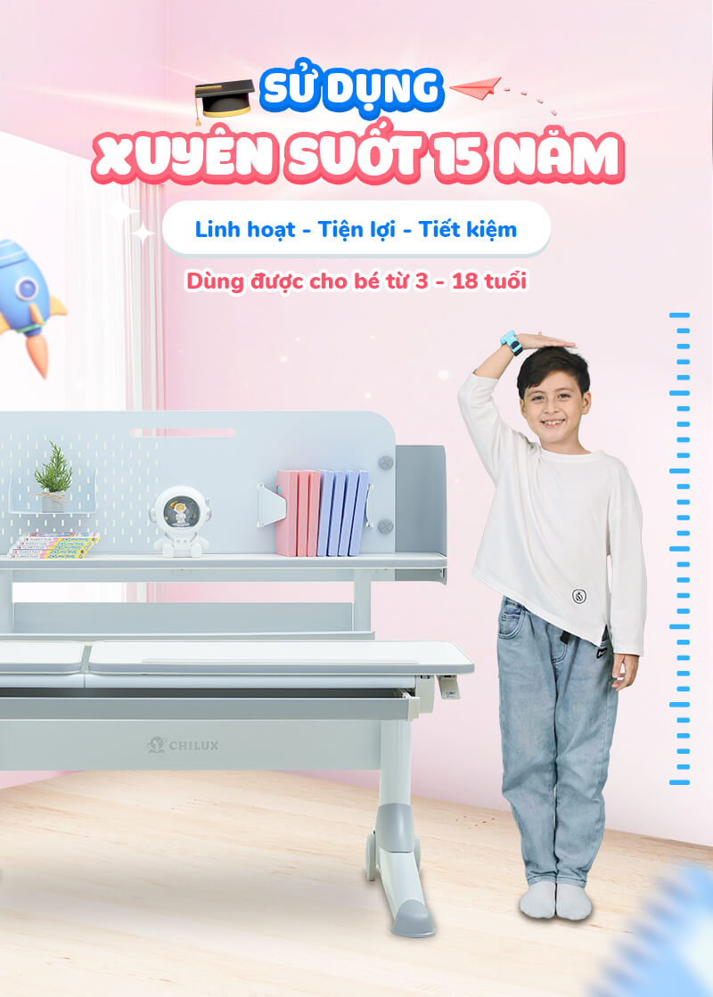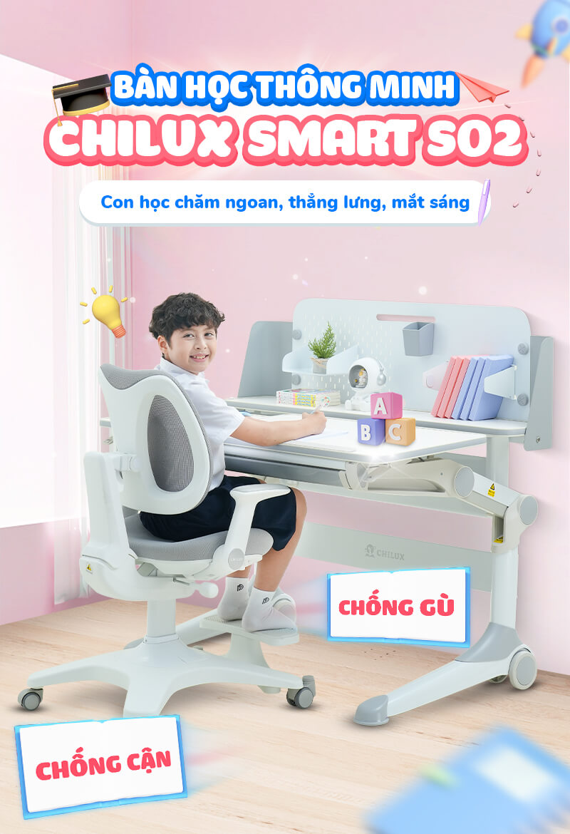 Bàn học cho bé cao cấp Chilux Smart S02 chống gù, chống cận, phân chia ngăn khoa học