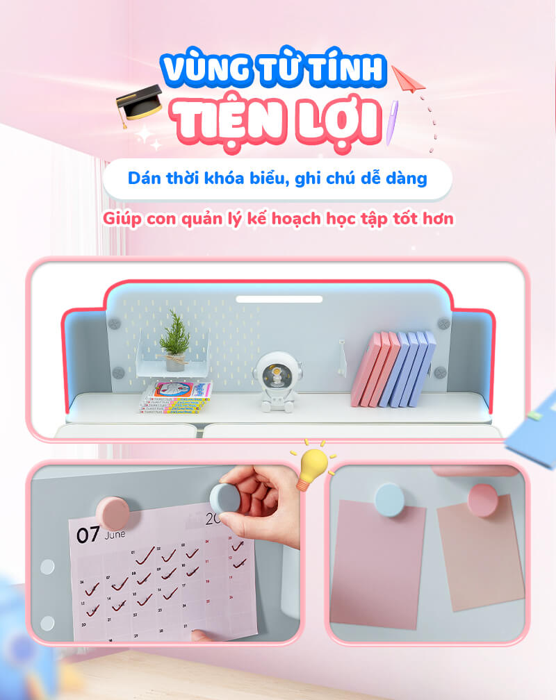 - Vùng từ tính dán thời khóa biểu, kế hoạch học tập