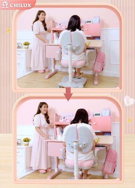 Như đã đề cập ở trên, việc bàn học Chilux có thể thay đổi chiều cao mặt bàn và góc của mặt bàn học, cũng như kết hợp với một chiếc ghế ngồi học tập đúng tư thế từ Chilux sẽ giúp bé giảm đi một phần nguy cơ bị gù bị cận