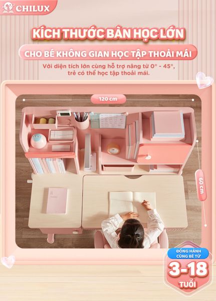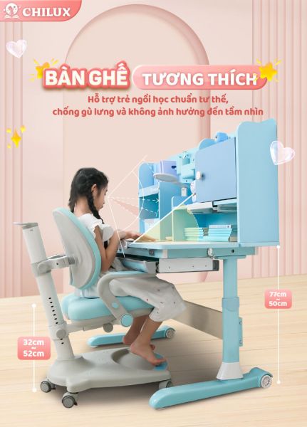 + Bàn học Chilux hỗ trợ chống gù chống cận