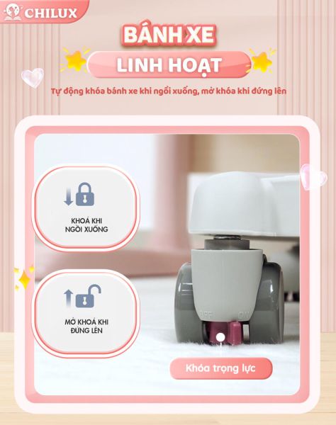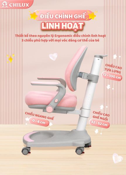Cả 3 dòng bàn học của Chilux đểu có thể điều chỉnh được chiều cao của chân bàn, từ đó mặt bàn có chiều cao điều chỉnh được từ 53cm đến 77cm so với mặt đất. Kết hợp với ghế ngồi đúng tư thế cũng điều chỉnh từ 35-56cm sẽ giúp sản phẩm phù hợp với nhiều độ tuổi của bé khác nhau, giúp bé ngồi học đúng tư thế