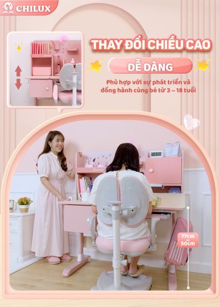 + Bàn học Chilux có thể điều chỉnh chiều cao