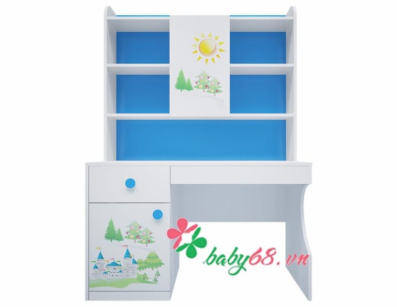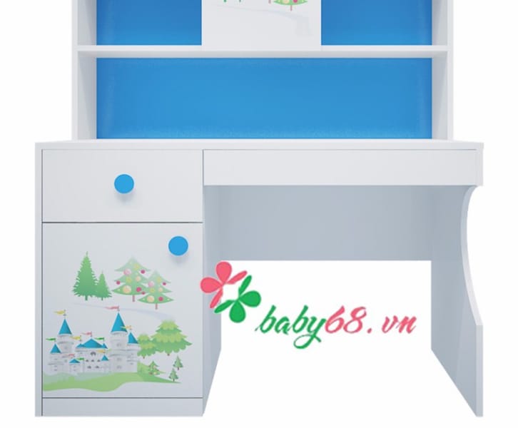 Bàn học trẻ em hình lâu đài BH02 (Trắng phối xanh dương)