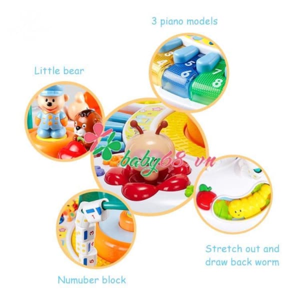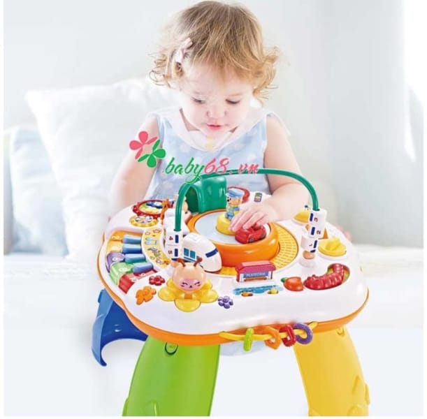 – Bàn nhạc được thiết kế với rất nhiều các nút điều khiển, khi bé ấn nút bàn đồ chơi sẽ tự động phát ra những bản nhạc vui nhộn, vừa giúp các thao tác ở tay của bé linh hoạt hơn vừa tạo sự vui vẻ và hứng thú cho bé khi tập đứng, tập đi.