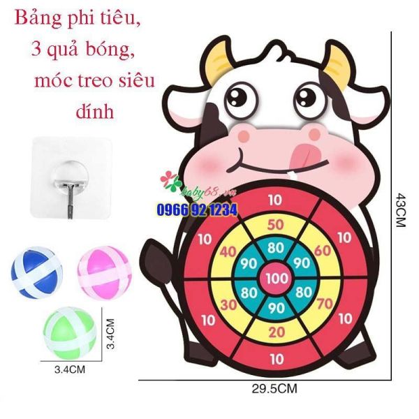 Bảng phi tiêu bóng dính, bảng phi tiêu hình thú – Đồ chơi ném bóng gai tặng kèm 3 bóng an toàn cho bé vui chơi