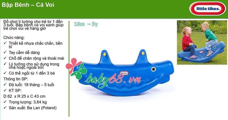 Đồ chơi lí tưởng cho trẻ từ 1 đến 3 tuổi. Bập bênh cá voi xanh giúp trẻ chơi vui vẻ hàng giờ