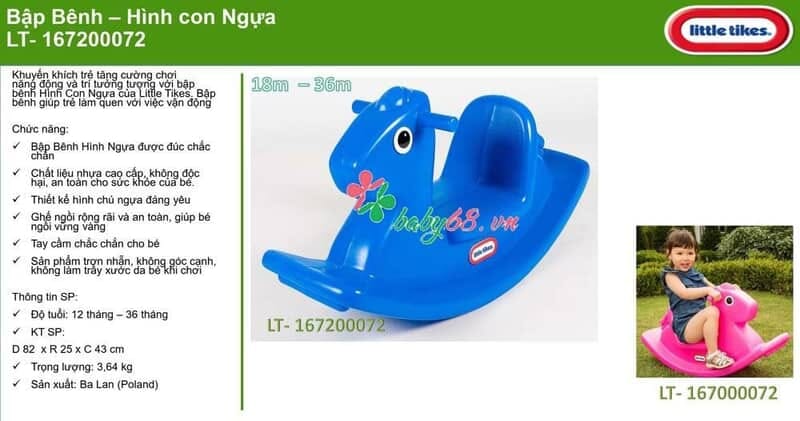 Khuyến khích trẻ tăng cường chơi năng động và trí tưởng tượng với bập bênh Hình Con Ngựa của Little Tikes. Bập bênh giúp trẻ làm quen với việc vận động