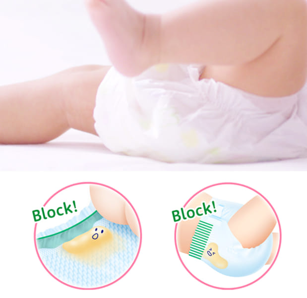 – Merries sử dụng thun chân co giãn siêu mềm mại, siêu linh hoạt, chuyển động theo từng cử động nhỏ nhất của bé, tạo nên vách chống tràn êm dịu ôm khít quanh đùi giúp chống tràn tối ưu.