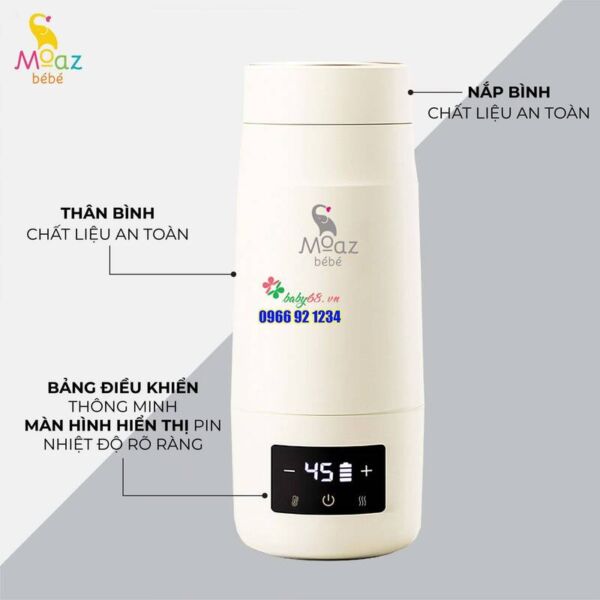 • Bình đun nước pha sữa di động mb 058 của Moaz BéBé là sản phẩm bình đun di động, thuận tiện để đun nước pha sữa khi đi du lịch. Thiết kế nhỏ gọn, màn hình led thao tác dễ dàng và hiển thị nhiệt độ của nước. Dung tích 300ml giúp bố mẹ có thể mang đi mọi nơi, thuận tiện đun nước, hâm nước pha sữa cho bé