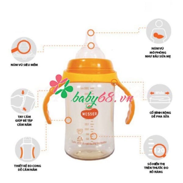 Tên sản phẩm: Bình sữa cổ rộng Wesser PPSU 180ml
