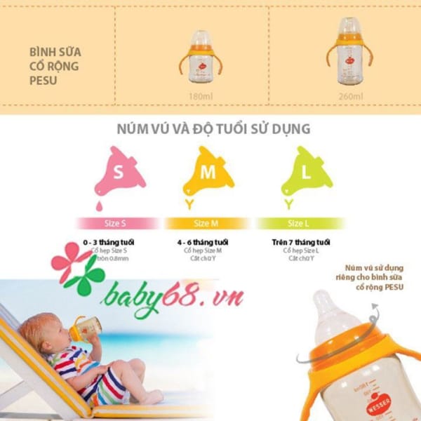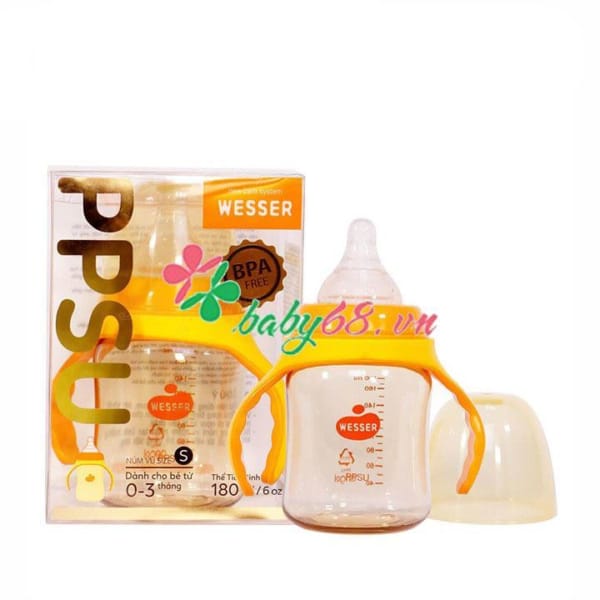 Bình sữa Wesser PPSU cổ rộng 180ml – Kèm núm ti size S, 0-3m (Mẫu Mới)