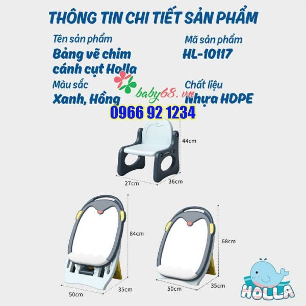 Bộ bảng vẽ kèm ghế Holla cao cấp 2022 cho bé hình ong và chim cánh cụt