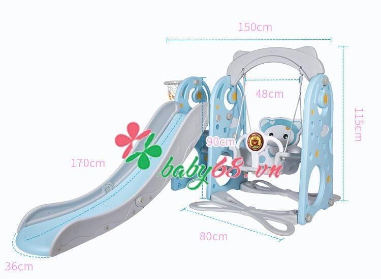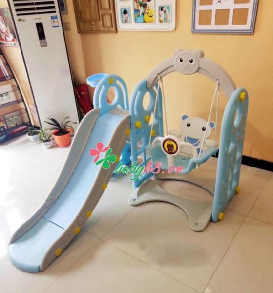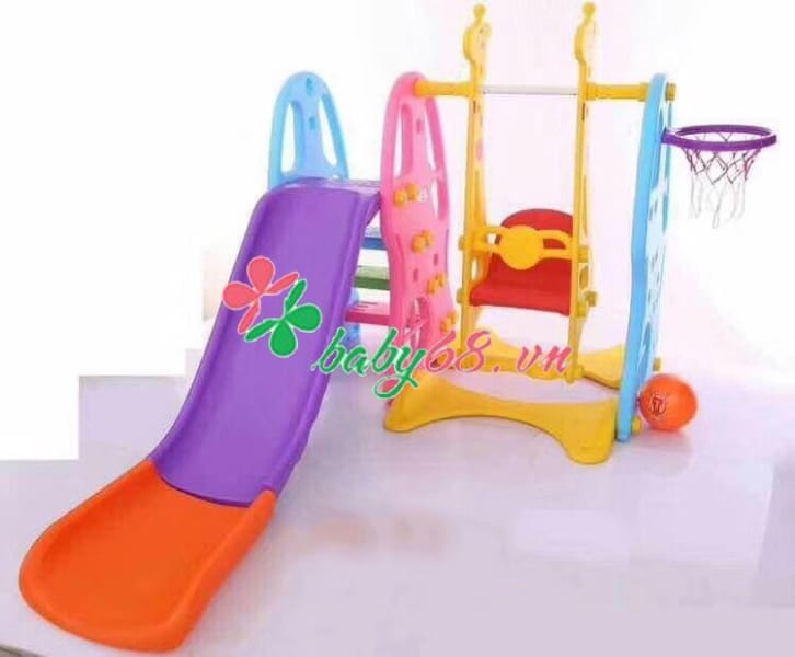 Bộ sản phầm gồm: cầu trượt, xích đu, kèm theo bóng rổ