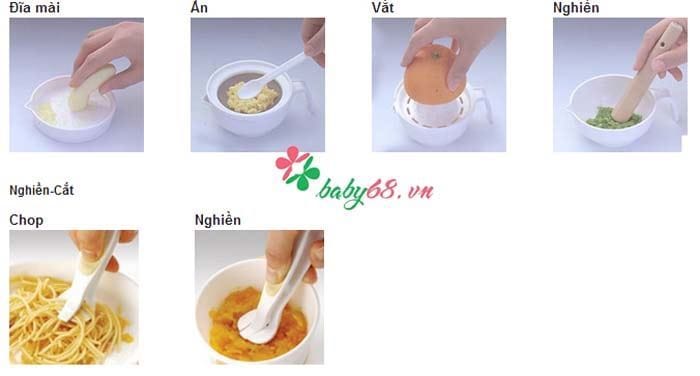 – 1 chày: dùng để giã nhỏ & nghiền nhuyễn thức ăn như thịt, cá, lòng đỏ trứng gà …
