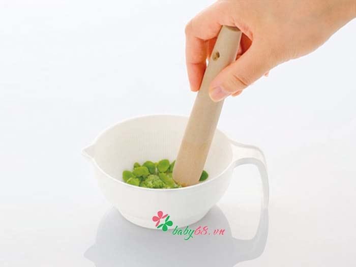 – 1 bát có tay cầm, bề mặt có rãnh sần: dùng để nghiền nhuyễn thức ăn & làm bát đựng thức ăn cho bé.