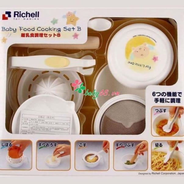 Bộ chế biến ăn dặm cho bé RC53371 sử dụng đơn giản, nhiều tiện ích, bảo quản đơn giản. Để tránh thất lạc các dụng cụ, nên sắp xếp gọn gàng theo bộ khi bảo quản. Với chất liệu là nhựa cao cấp, đã được kiểm chứng bởi Cục quản lí thực phẩm và dược phẩm của Mỹ, bộ sản phẩm đảm bảo không có tính độc hại, an toàn cho bé, bảo vệ sức khỏe của bé và không gây ô nhiễm môi trường.