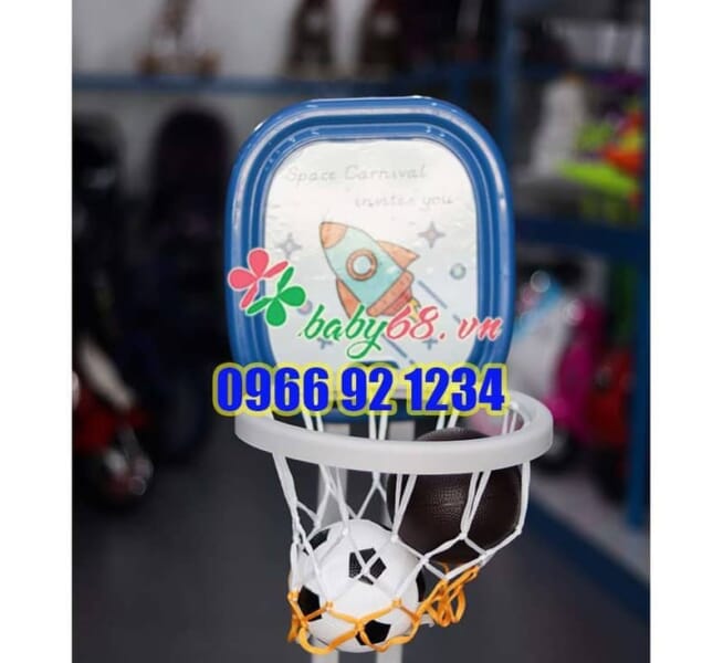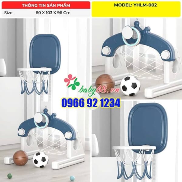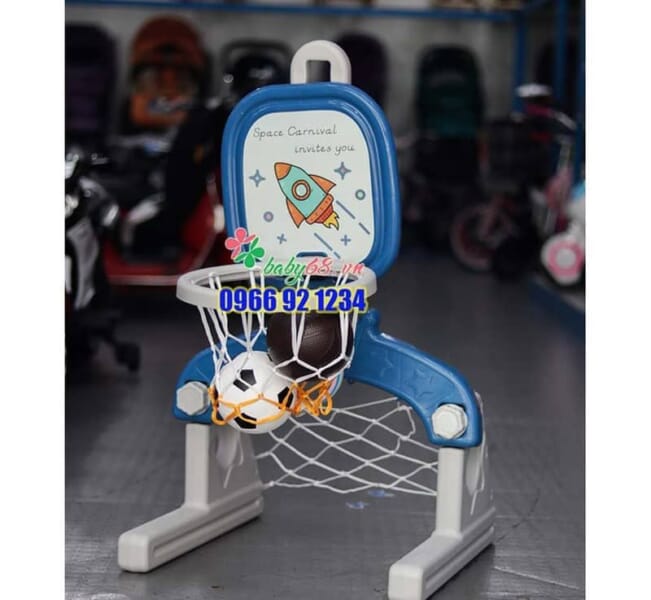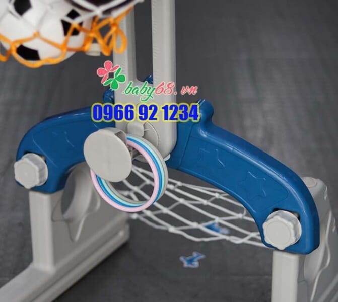 – Bộ đồ chơi thể thao đa năng 3 trong 1: cột bóng rổ kiêm bóng đá và trò ném vòng.