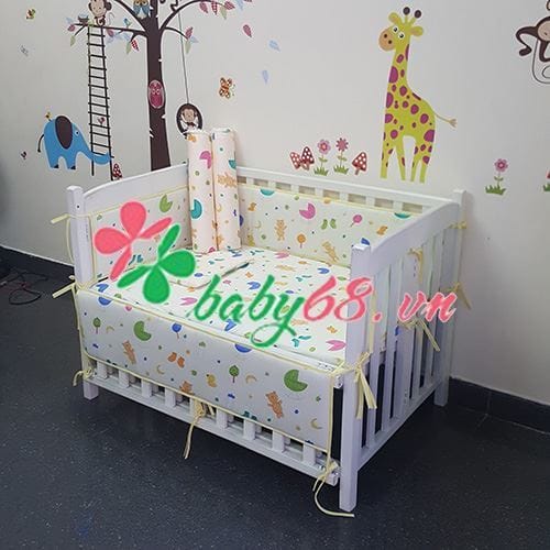 – Bộ quây và drap vải cotton lụa Hàn Quốc chất vải mịn mát , ko xù lông, thích hợp với làn da nhạy cảm của bé