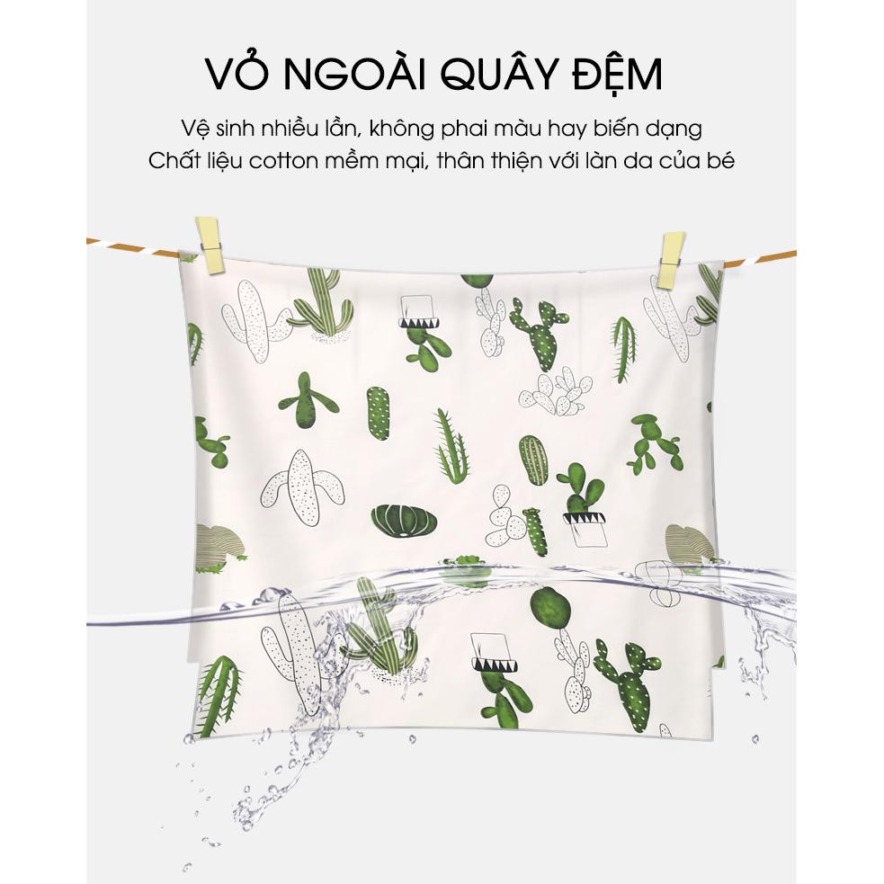 - Chất liệu vải cotton: không nhăn, không bí, không ngậm nước, độ bền cao, vỏ bọc quây có khoá kéo, các mẹ thuận lợi tháo ruột ra để giặt nhanh khô.