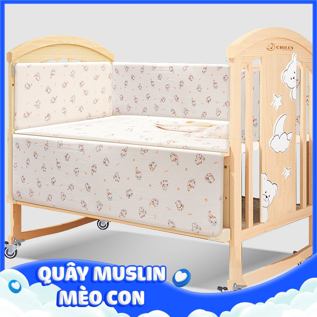 Bộ quây đệm cotton lót nôi cũi cho bé Chilux
