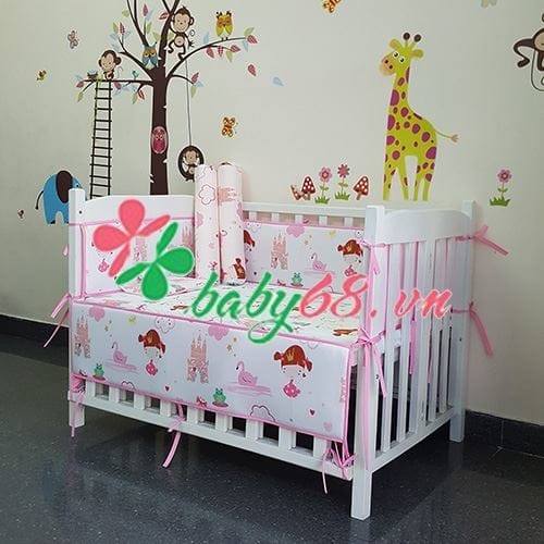 – Bộ quây và drap vải cotton lụa Hàn Quốc chất vải mịn mát , ko xù lông, thích hợp với làn da nhạy cảm của bé