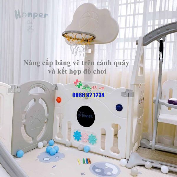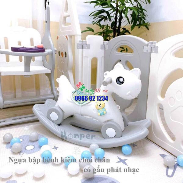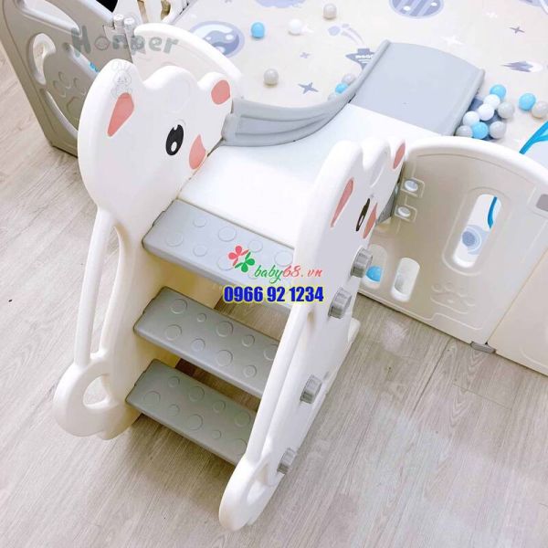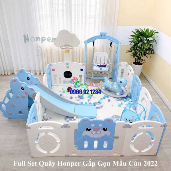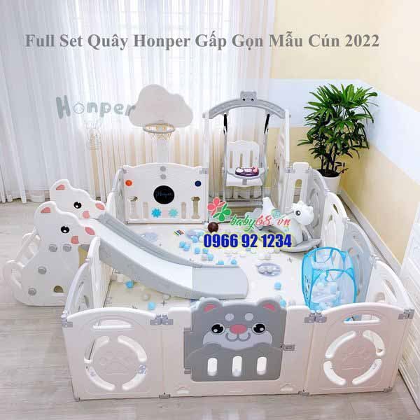 Bộ quây nhựa, cầu trượt, xích đu, ngựa, bóng rổ Honper mẫu cún 2022