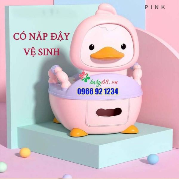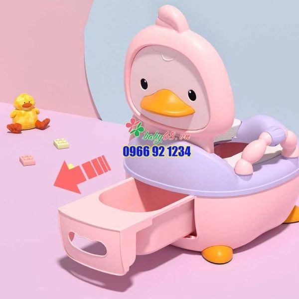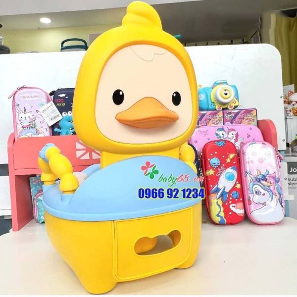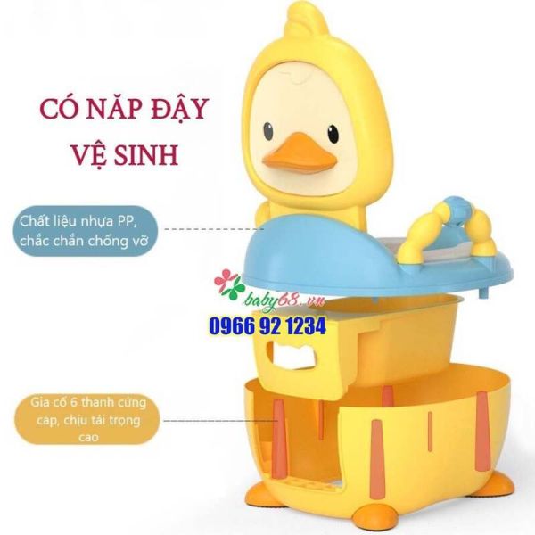 Bô vệ sinh cho bé CAYABE hình vịt con có tay vịn an toàn, đệm ngồi êm ái, bô ngồi cho em bé