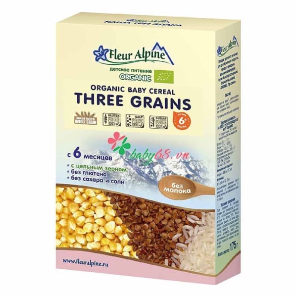 - Bột Organic ba loại hạt nguyên cám Fleur Alpine (175g) là sản phẩm bổ sung các dưỡng chất thiết yếu từ các loại ngũ cốc trong giai đoạn này của bé.