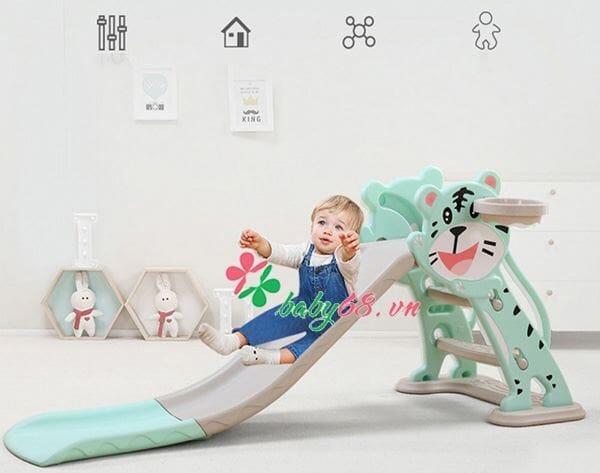 Điểm nổi bật của Cầu trượt kèm khung bóng rổ hình hổ Toys House WM19024 (nhiều màu)