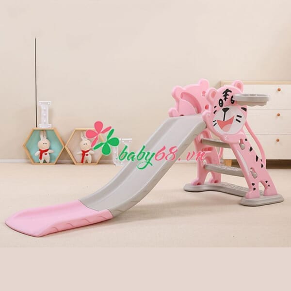 Cầu trượt kèm khung bóng rổ hình hổ Toys House WM19024 màu hồng