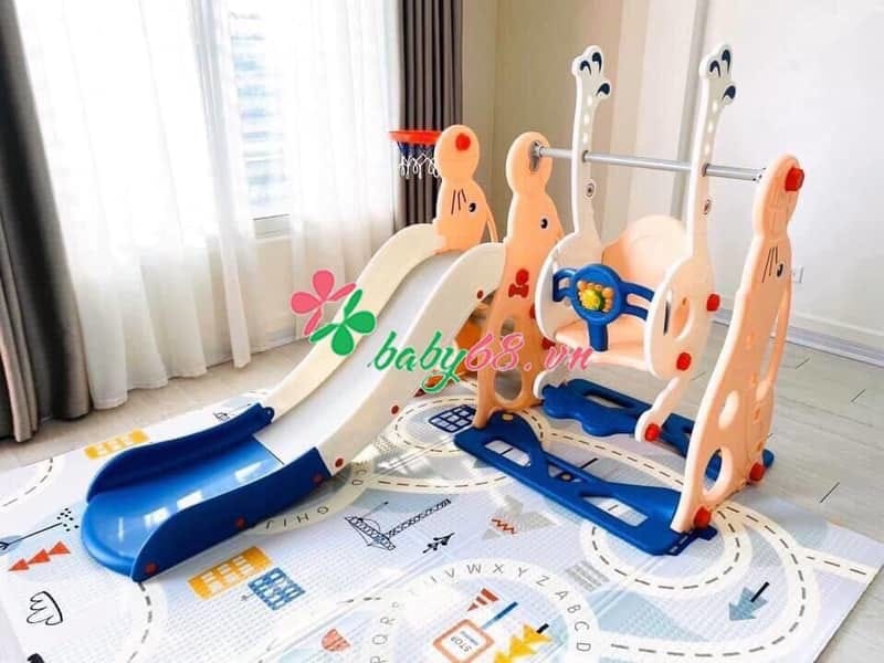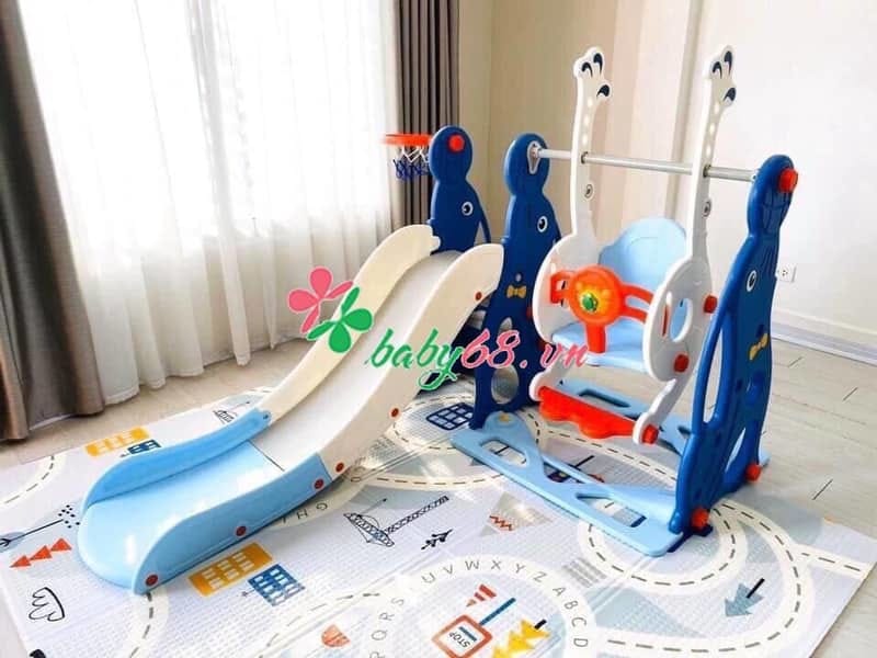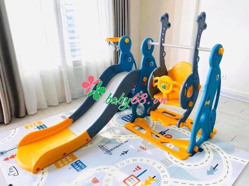 – Cầu trượt xích đu giúp các bé vui chơi vận động ,làm bằng nhựa nguyên sinh không mùi .