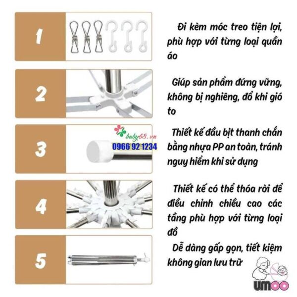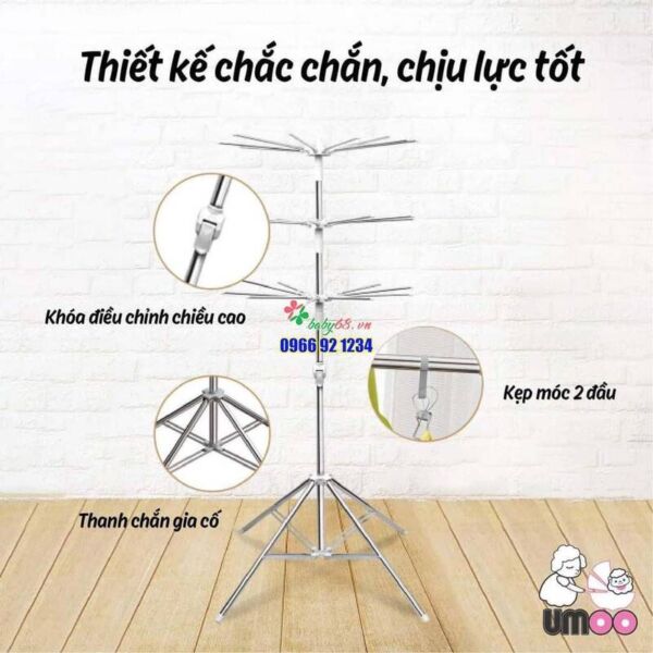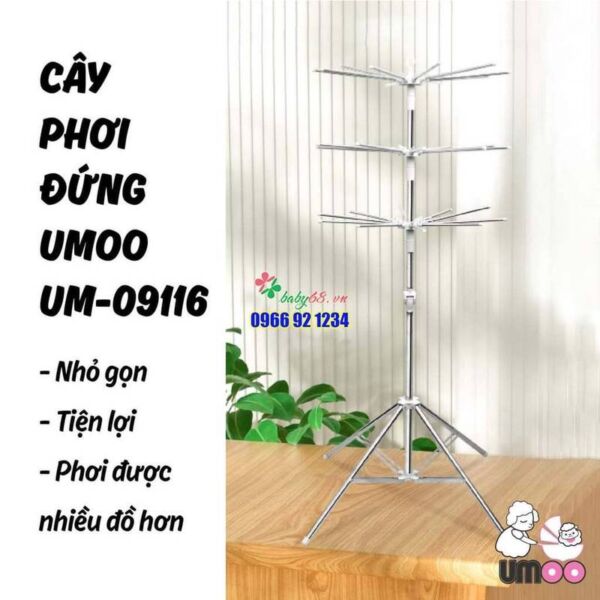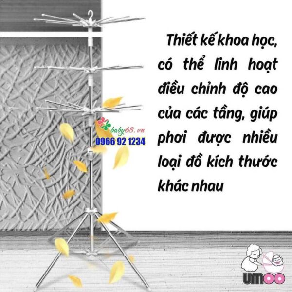 Cây phơi đồ inox Umoo UM-09116 cho bé đa năng, gấp gọn xoay 360 độ
