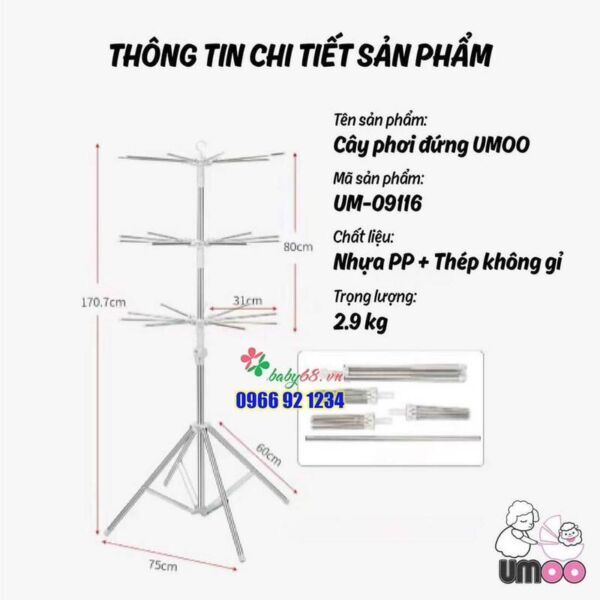 𝗧𝗵𝗼̂𝗻𝗴 𝘁𝗶𝗻 𝘀𝗮̉𝗻 𝗽𝗵𝗮̂̉𝗺 cây phơi đồ em bé chính hãng umoo nhỏ gọn tiện lợi bằng thép cao cấp không gỉ: