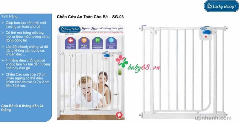 Chặn cửa an toàn Lucky Baby SG-03 dùng để chắn tại cửa phòng, cầu thang hay bất cứ chỗ nào cần ngăn bé khỏi nơi nguy hiểm… nhưng vẫn dễ dàng quan sát và nhìn thấy trẻ thông qua cửa ngăn.