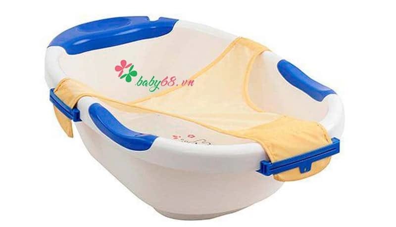 - Thau tắm được thiết kế phù hợp với thân người bé ngồi, nằm tắm trong chậu mà vẫn thoải mái.
