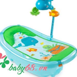 – Khi bé lớn hơn, chỉ cần bỏ tấm lưới sẽ cho bé một khoảng rộng hơn để ngồi tắm và chơi với nước. Chậu tắm cùng có cho dựa lưng cao giúp bé ngồi thoải mái.