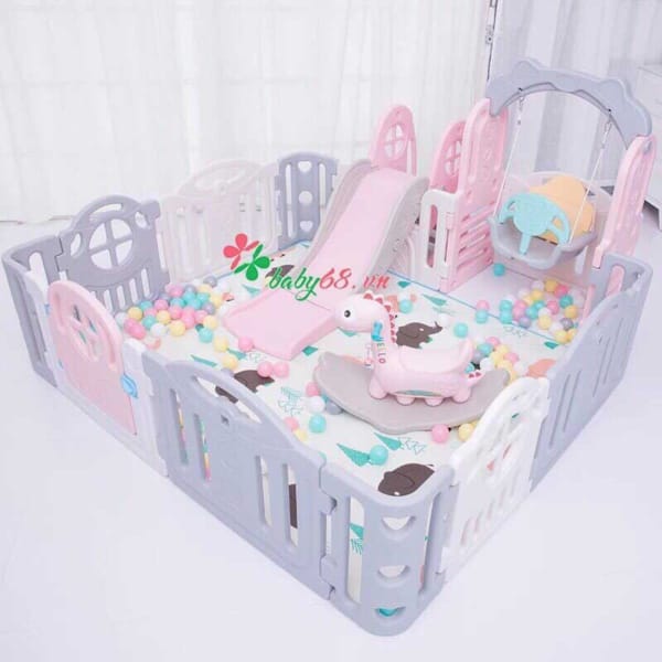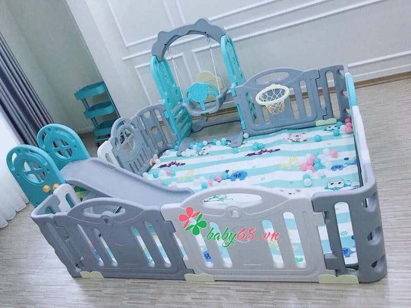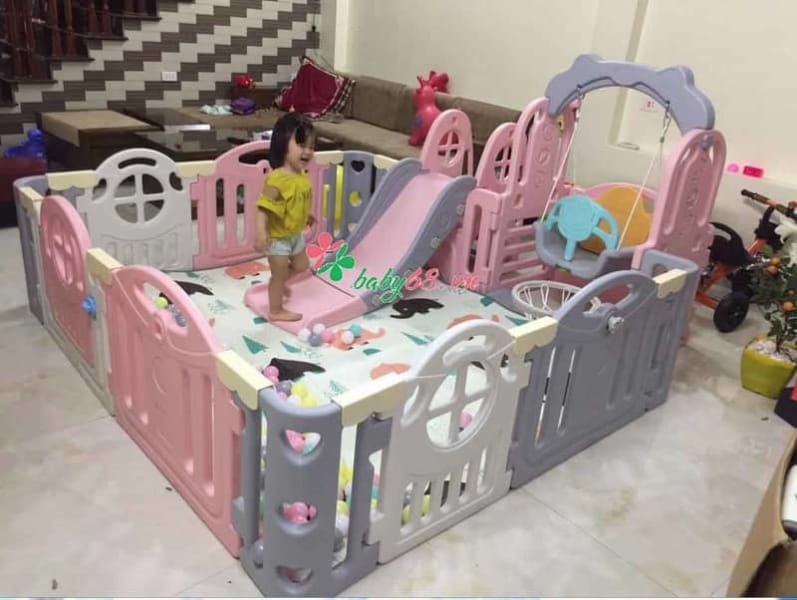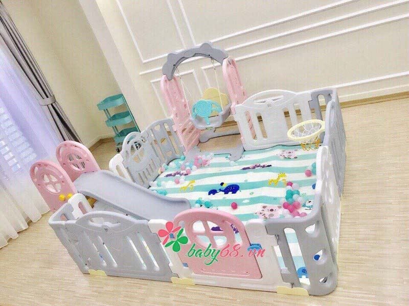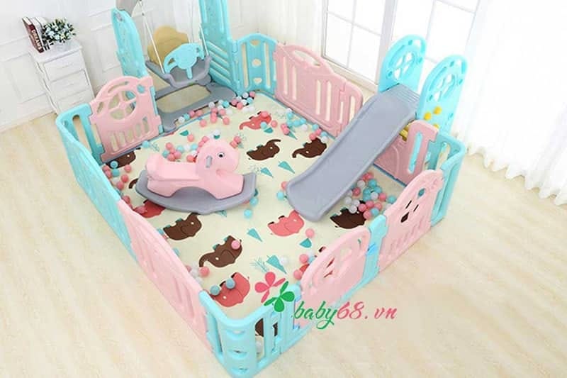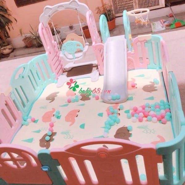 1- Quây cũi kích thước 1m8x2m màu xanh hồng, phù hợp cho cả bé gái và bé trai