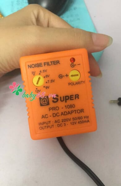 AC – DC Adaptor với các nút điều chỉnh điện áp “NOISE FILTER”, cực âm cực dương “POLARITY”. Bạn phải chọn đúng các thông số điện áp cần cấp nguồn hoặc sạc, đặc biệt là với các cực âm dương để tránh hư hỏng thiết bị.
