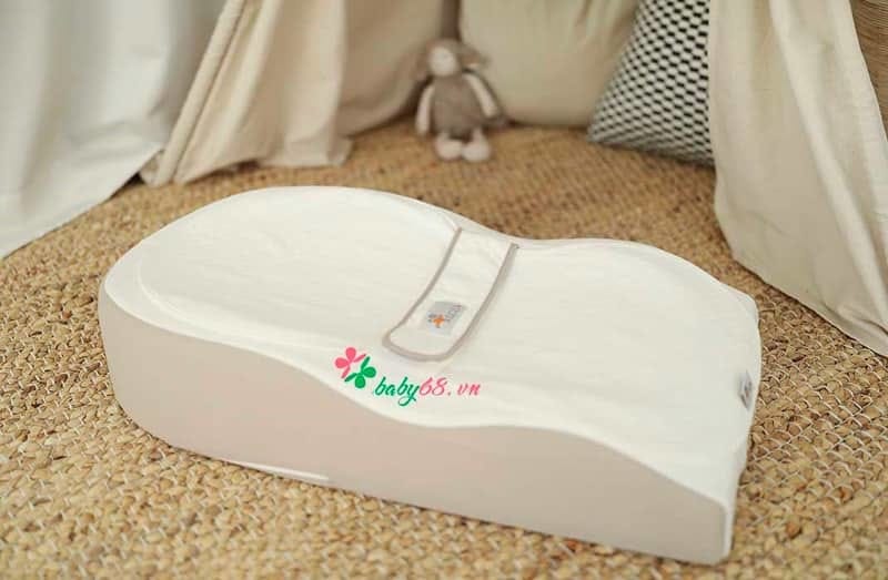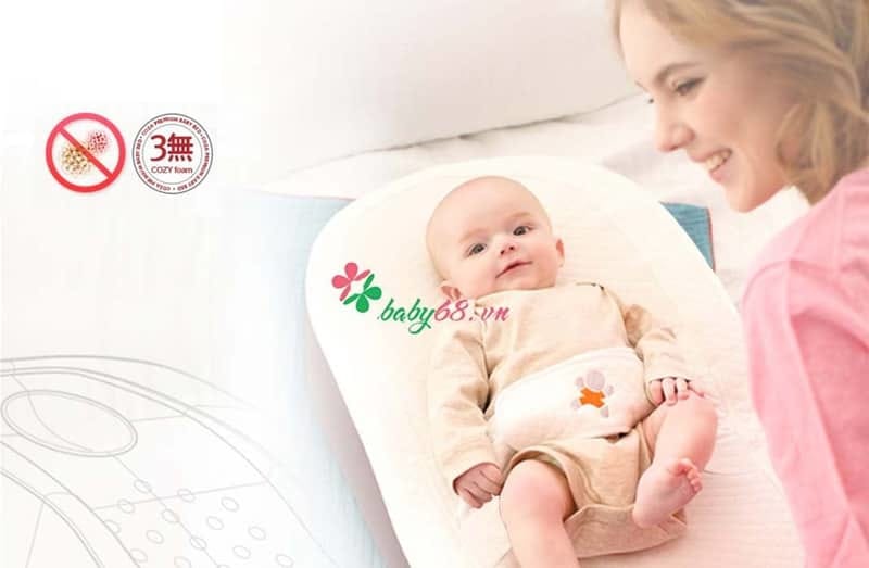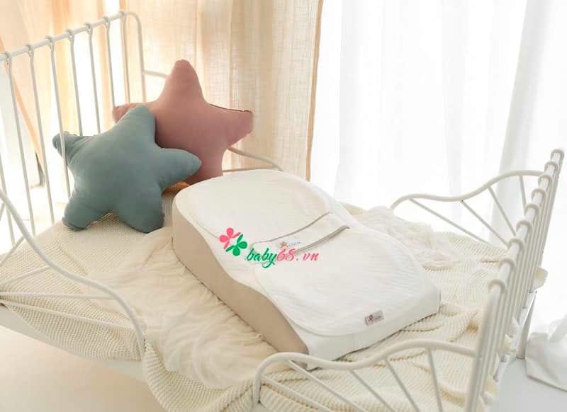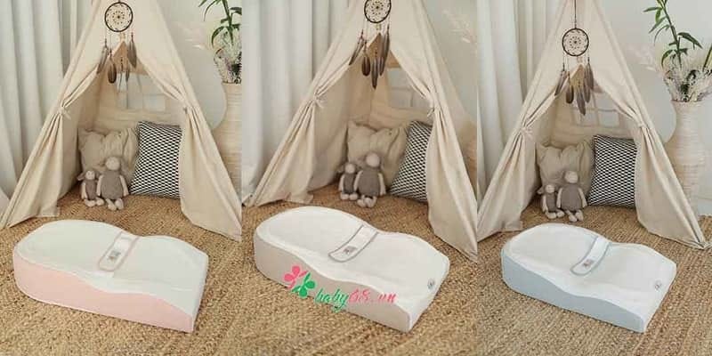 Đệm Coza baby bed với phần chính giữa gối có độ lõm và góc nghiêng 15 độ giúp bé không bị méo đầu và hệ hô hấp bé tốt hơn