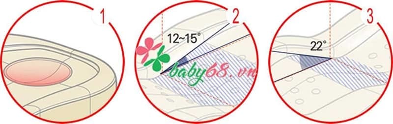 2. Thiết kế góc nghiêng 12-15 độ giúp hệ hô hấp bé tốt hơn, chống hiện trượng trào ngược sữa ở bé, ngăn ngừa hội chứng đột tử ở bé.