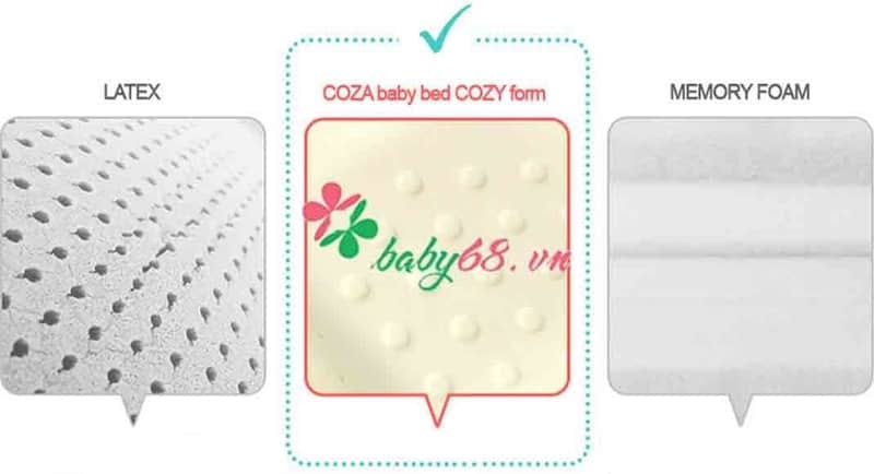 Đệm Coza baby bed được chế tạo từ vật liệu Cozy foam với cấu trúc có mật độ và độ bền cao sẽ giúp lưng bé được thoáng khí