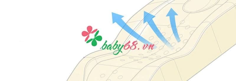 Sản phẩm cũng giúp tuần hoàn không khí với vật liệu cấu tạo lỗ thông khí có tính giãn nở cao giúp đào thải hiệu quả mồ hôi và thân nhiệt của trẻ.