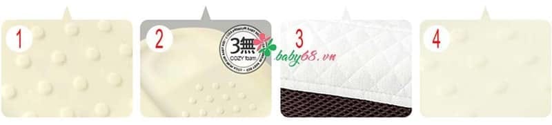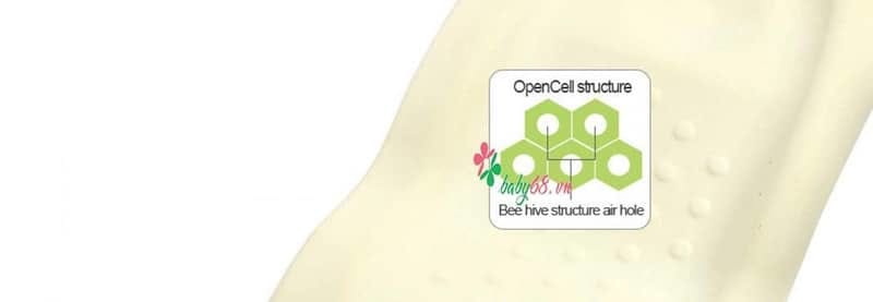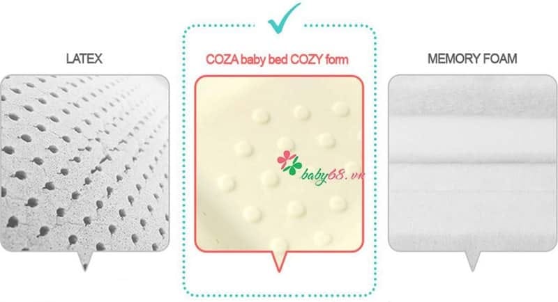 Vật liệu đệm Coza được cấu tạo lỗ thông khí , có tính giãn nở cao giúp tuần hoàn không khí , đào thải hiệu quả mồ hôi và thân nhiệt của trẻ.