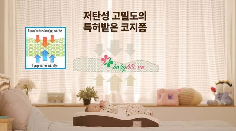 - Đệm có khả năng hấp thu lực lý tưởng từ cơ thể Bé tạo môi trường giấc ngủ thoải mái và êm ái khi Bé nằm một thời gian dài.